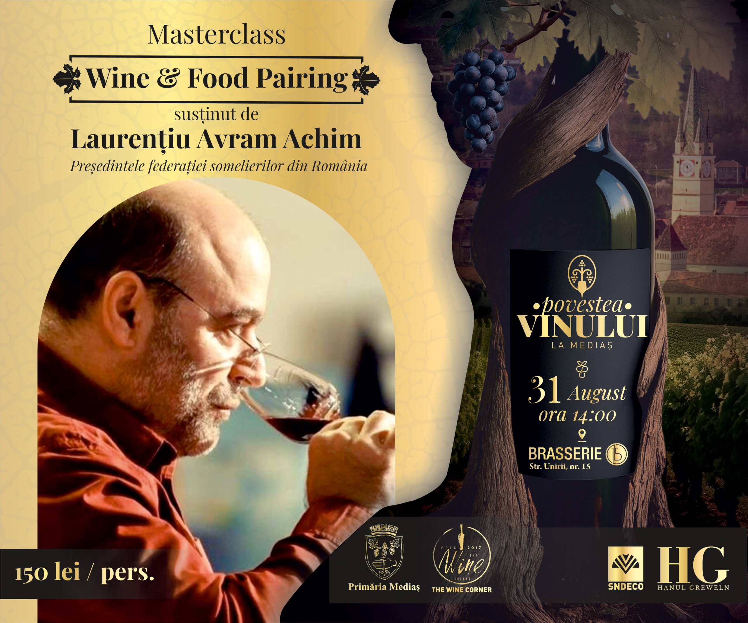 Descoperă arta asocierii vinului cu preparatele potrivite, într-un masterclass susținut de Laurențiu Achim, Președintele Federației Somelierilor din România. Vei învăța cum aromele se completează și se amplifică atunci când vinul și mâncarea sunt alese inspirat.