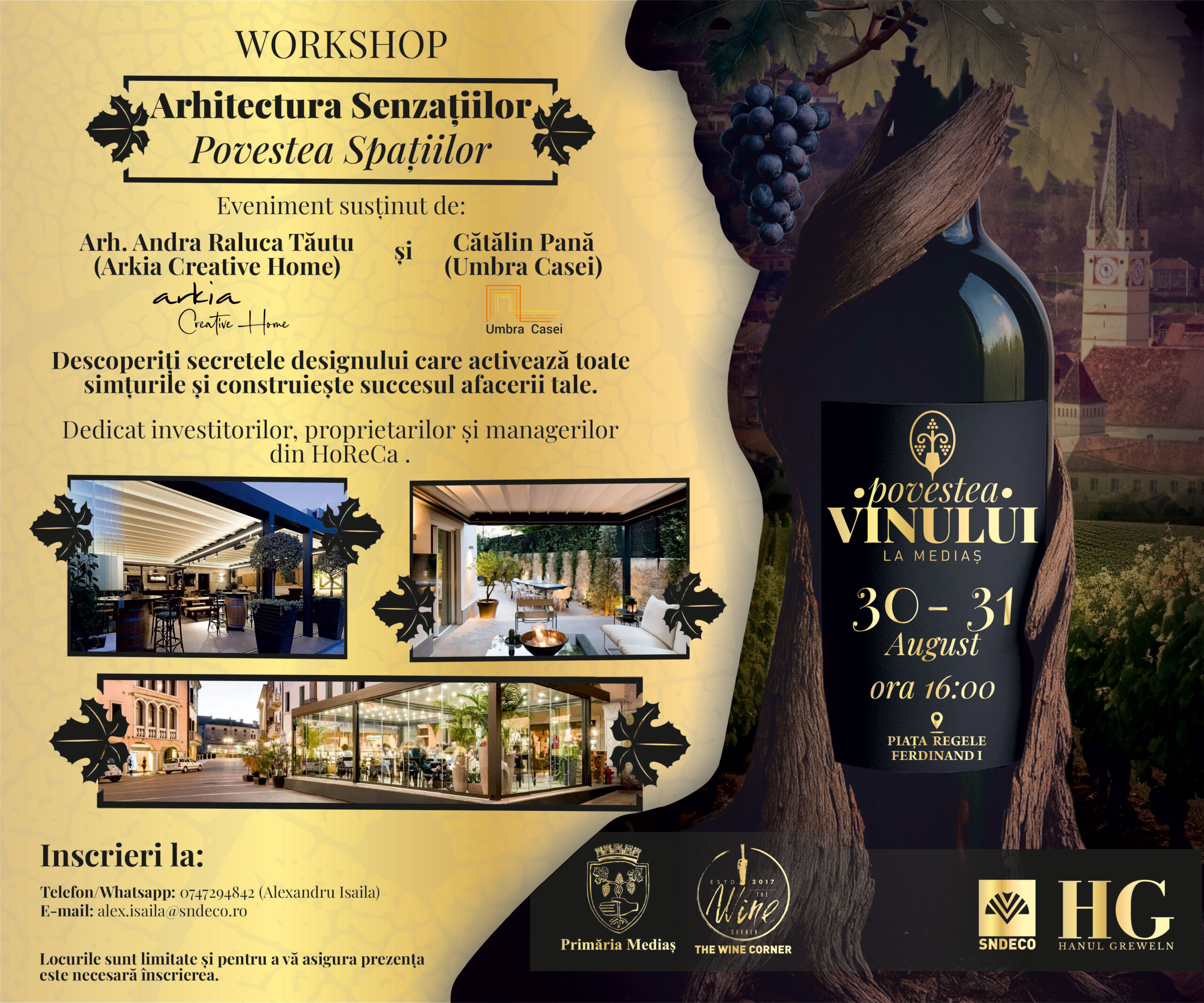 Eveniment organizat de The Wine Corner, Hanul Greweln in parteneriat cu Primăria Municipiului Mediaș cu sprijinul sponsorilor.